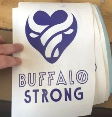 Buffalo community member Mandy Jordan-Lemmerman created hundreds of Buffalo Strong Decals seen on windows across the city. She sold more than 700 decals and donated over $4,000 directly to victims of the shooting.
